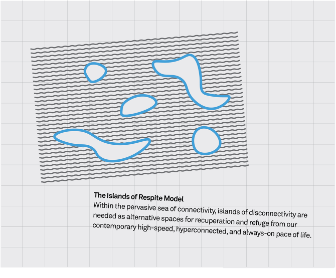Too much of anything can be a bad thing. The Internet and network connectivity is no exception. This projects uses speculative proposals to explore devices, use cases, and urban planning models to envision worlds with more freedom to not stay connected.