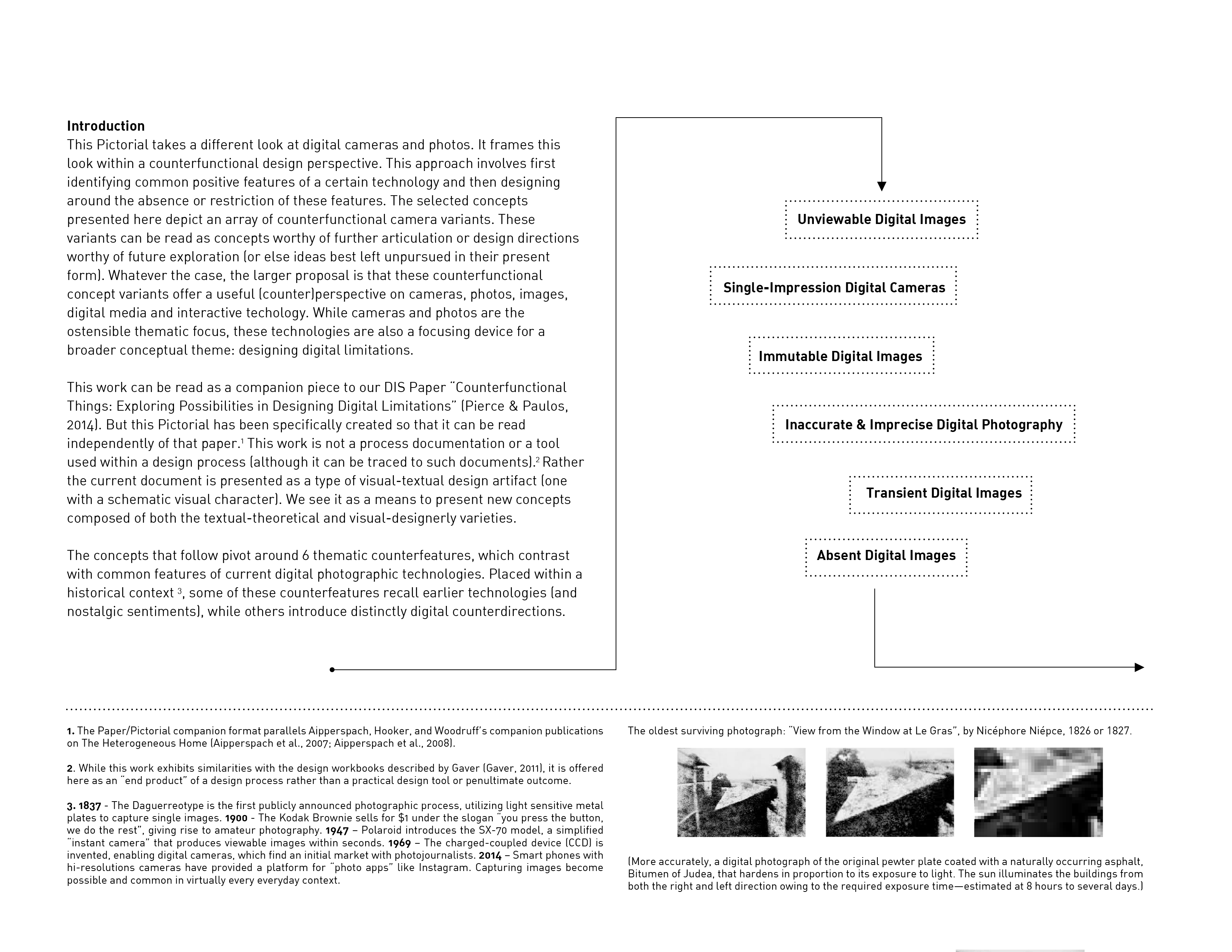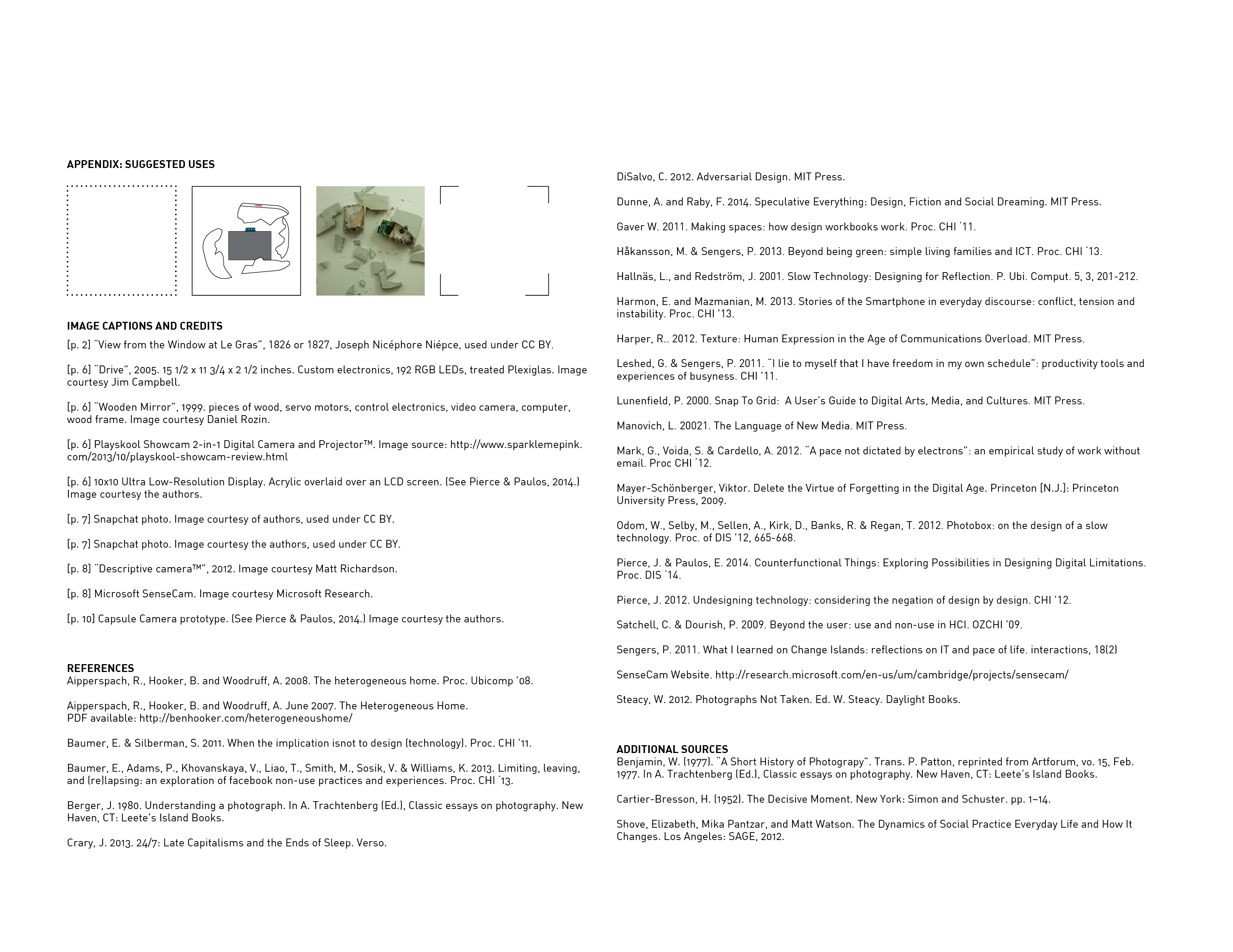 James Pierce and Eric Paulos. 2014. Some variations on a counterfunctional digital camera. In Proceedings of the 2014 conference on Designing interactive systems (DIS '14). ACM Press. [ACM][PDF]