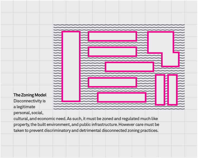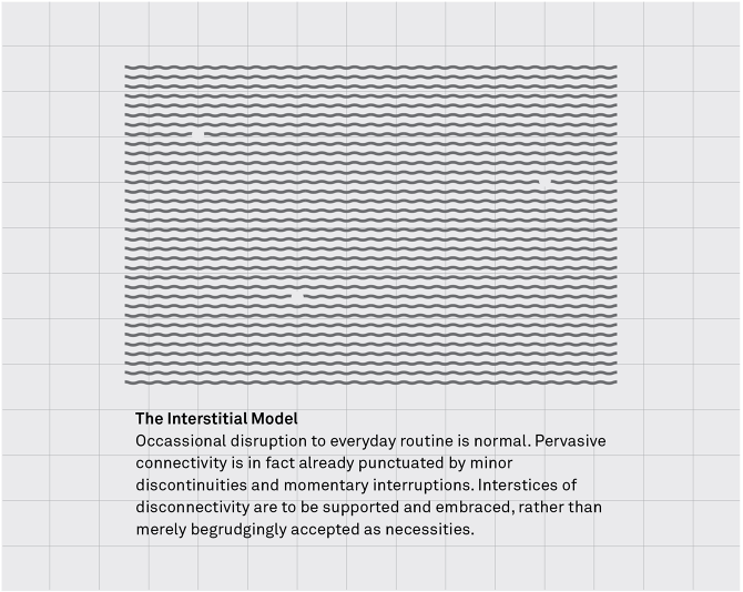 Too much of anything can be a bad thing. The Internet and network connectivity is no exception. This projects uses speculative proposals to explore devices, use cases, and urban planning models to envision worlds with more freedom to not stay connected.
